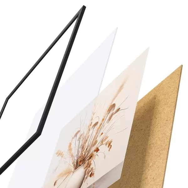 Plakát se skládá z rámu, plexiskla, tištěného obrazu a dřevotřískového podkladu. Díky úchytům na zadní straně lze plakát ihned zavěsit na zeď.