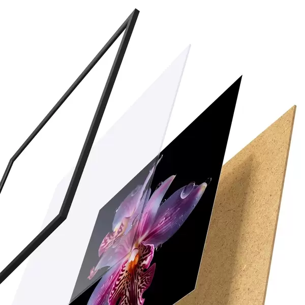 Plakát se skládá z rámu, plexiskla, tištěného obrazu a dřevotřískového podkladu. Díky úchytům na zadní straně lze plakát ihned zavěsit na zeď.