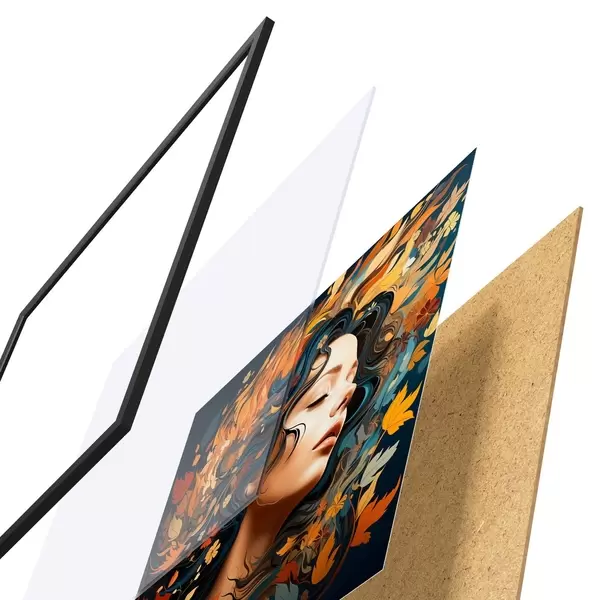 Plakát se skládá z rámu, plexiskla, tištěného obrazu a dřevotřískového podkladu. Díky úchytům na zadní straně lze plakát ihned zavěsit na zeď.