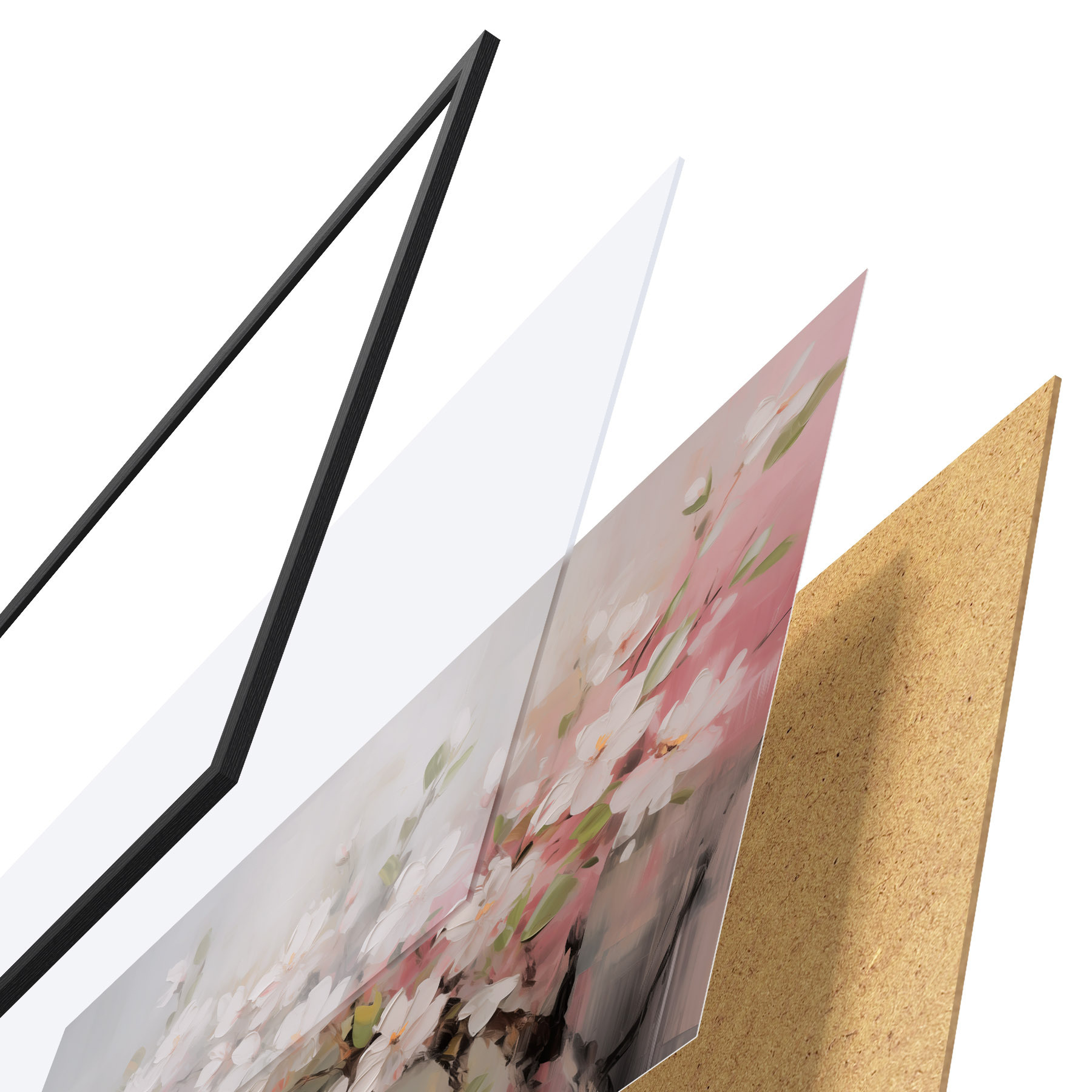 Plakát se skládá z rámu, plexiskla, tištěného obrazu a dřevotřískového podkladu. Díky úchytům na zadní straně lze plakát ihned zavěsit na zeď.