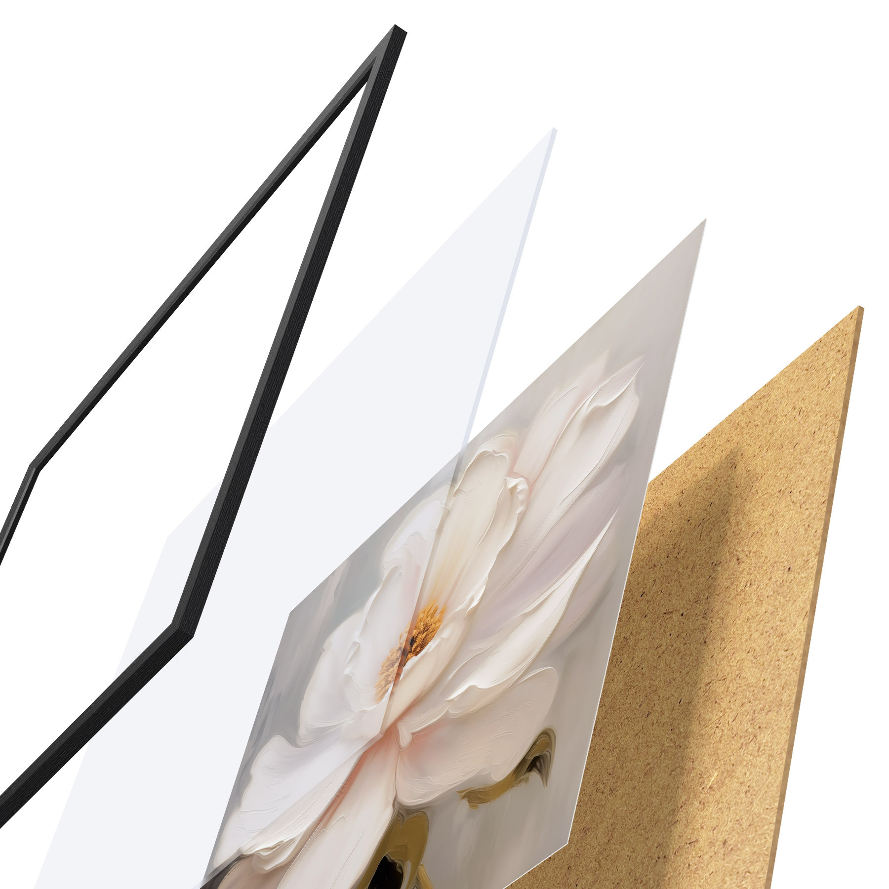 Plakát se skládá z rámu, plexiskla, tištěného obrazu a dřevotřískového podkladu. Díky úchytům na zadní straně lze plakát ihned zavěsit na zeď.