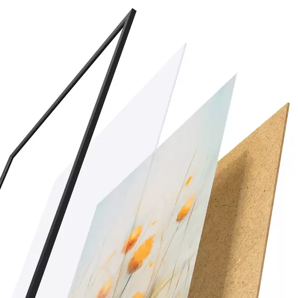 Plakát se skládá z rámu, plexiskla, tištěného obrazu a dřevotřískového podkladu. Díky úchytům na zadní straně lze plakát ihned zavěsit na zeď.