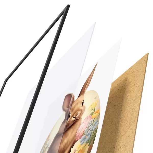 Plakát se skládá z rámu, plexiskla, tištěného obrazu a dřevotřískového podkladu. Díky úchytům na zadní straně lze plakát ihned zavěsit na zeď.