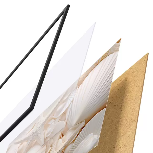 Plakát se skládá z rámu, plexiskla, tištěného obrazu a dřevotřískového podkladu. Díky úchytům na zadní straně lze plakát ihned zavěsit na zeď.