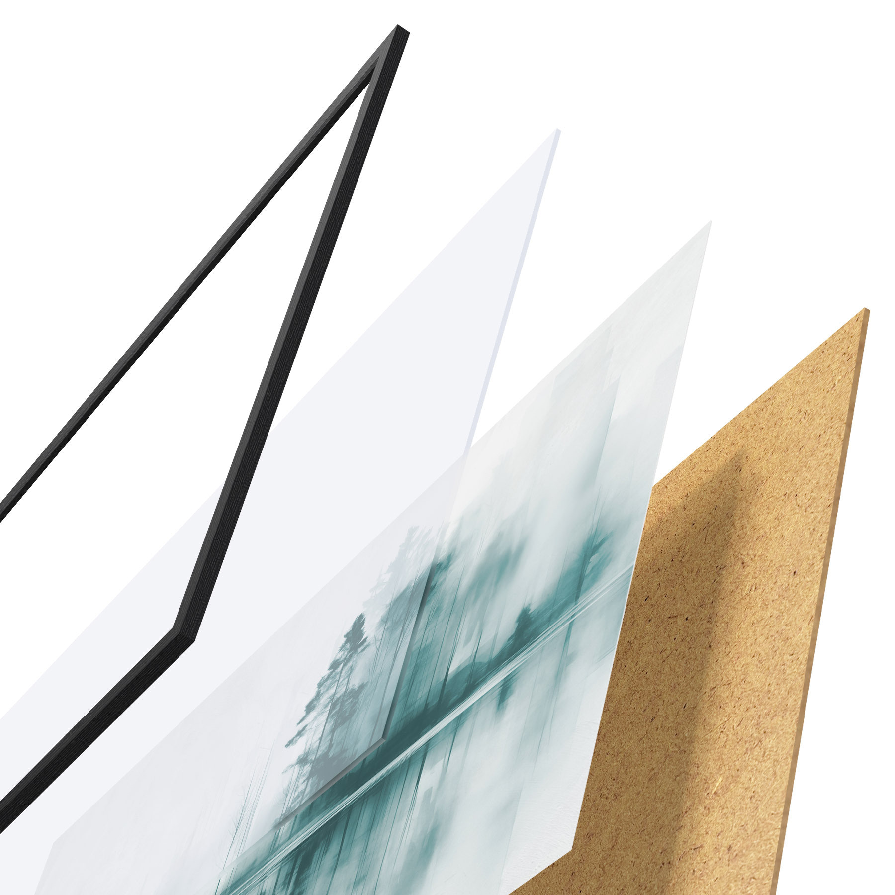 Plakát se skládá z rámu, plexiskla, tištěného obrazu a dřevotřískového podkladu. Díky úchytům na zadní straně lze plakát ihned zavěsit na zeď.