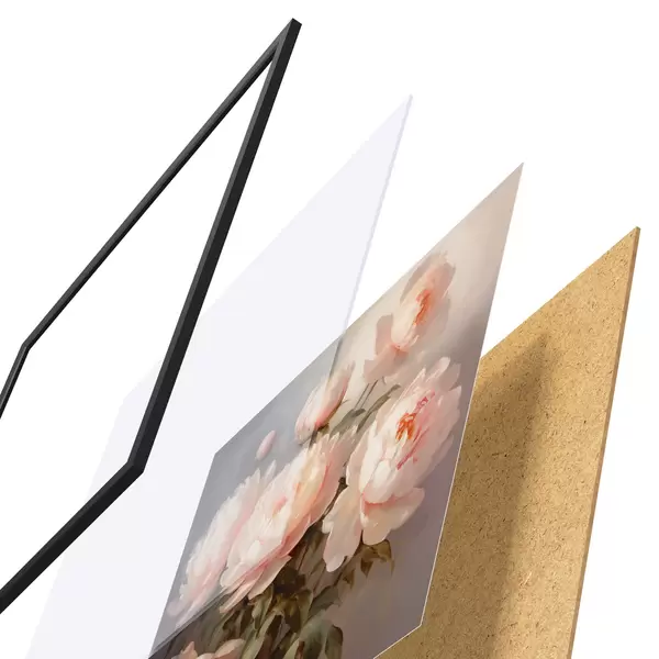 Plakát se skládá z rámu, plexiskla, tištěného obrazu a dřevotřískového podkladu. Díky úchytům na zadní straně lze plakát ihned zavěsit na zeď.