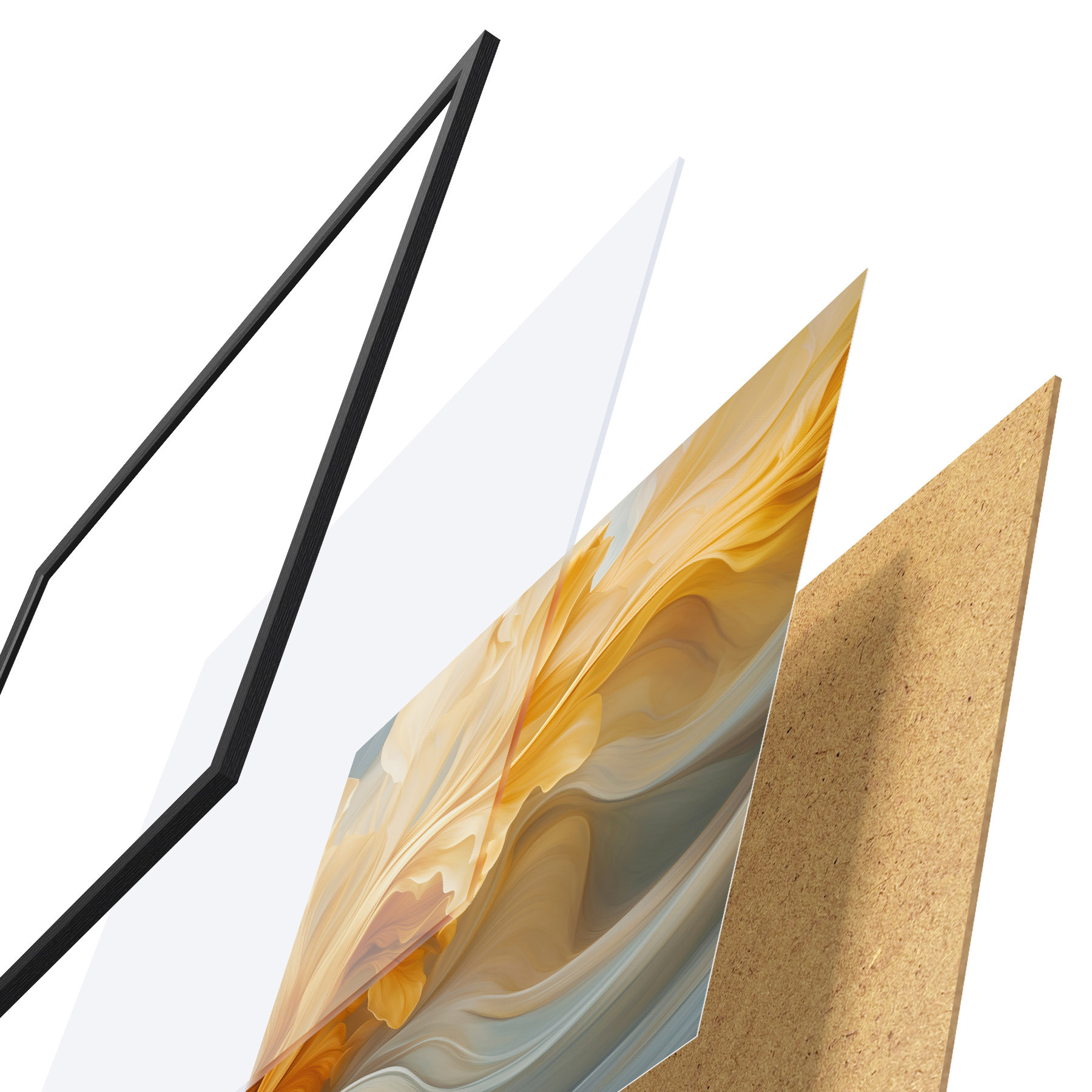 Plakát se skládá z rámu, plexiskla, tištěného obrazu a dřevotřískového podkladu. Díky úchytům na zadní straně lze plakát ihned zavěsit na zeď.