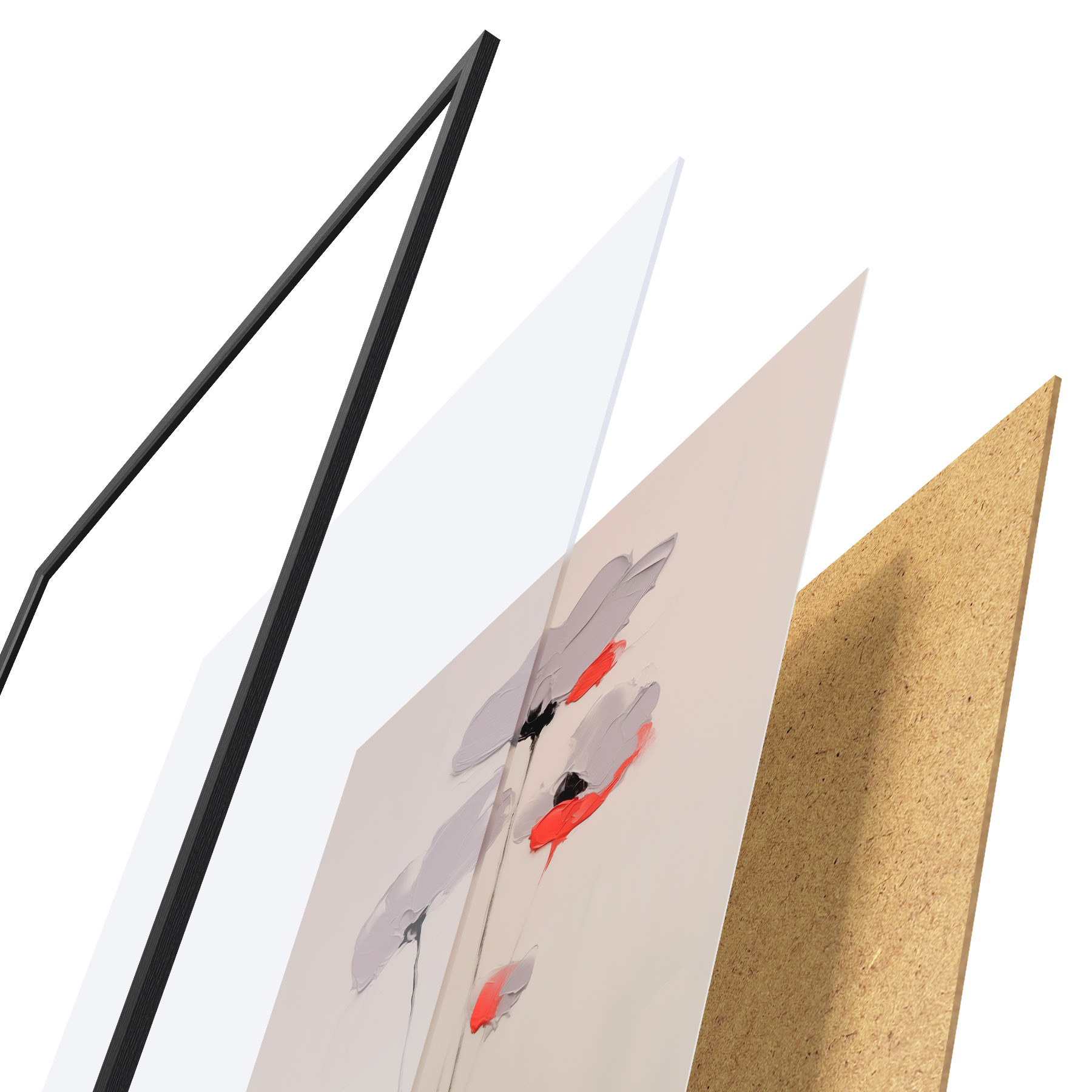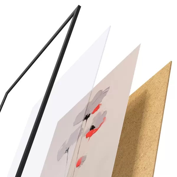 Plakát se skládá z rámu, plexiskla, tištěného obrazu a dřevotřískového podkladu. Díky úchytům na zadní straně lze plakát ihned zavěsit na zeď.