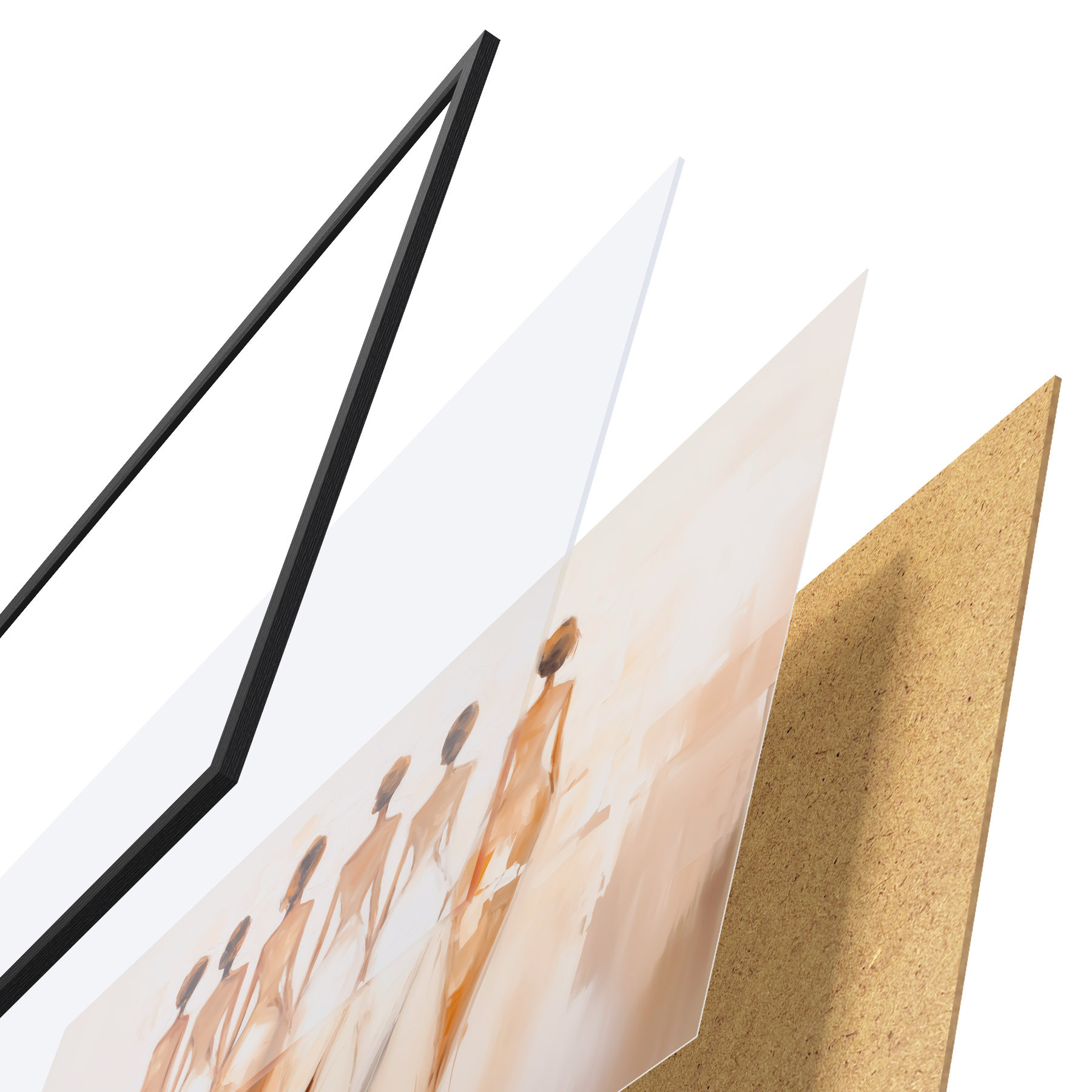 Plakát se skládá z rámu, plexiskla, tištěného obrazu a dřevotřískového podkladu. Díky úchytům na zadní straně lze plakát ihned zavěsit na zeď.