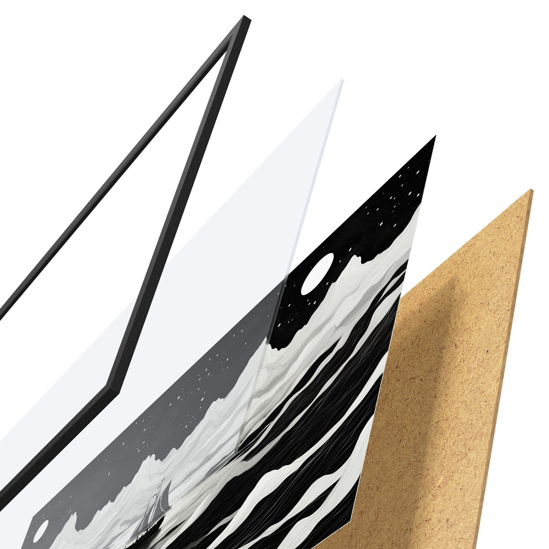 Plakát se skládá z rámu, plexiskla, tištěného obrazu a dřevotřískového podkladu. Díky úchytům na zadní straně lze plakát ihned zavěsit na zeď.