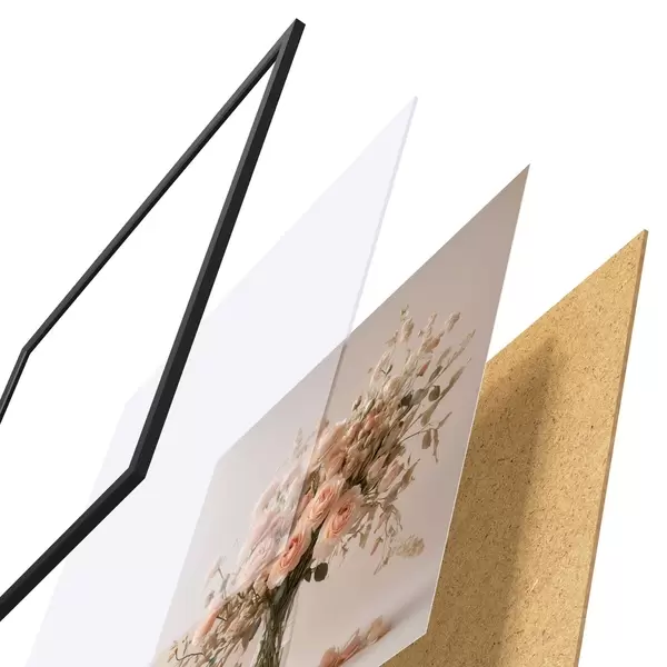 Plakát se skládá z rámu, plexiskla, tištěného obrazu a dřevotřískového podkladu. Díky úchytům na zadní straně lze plakát ihned zavěsit na zeď.