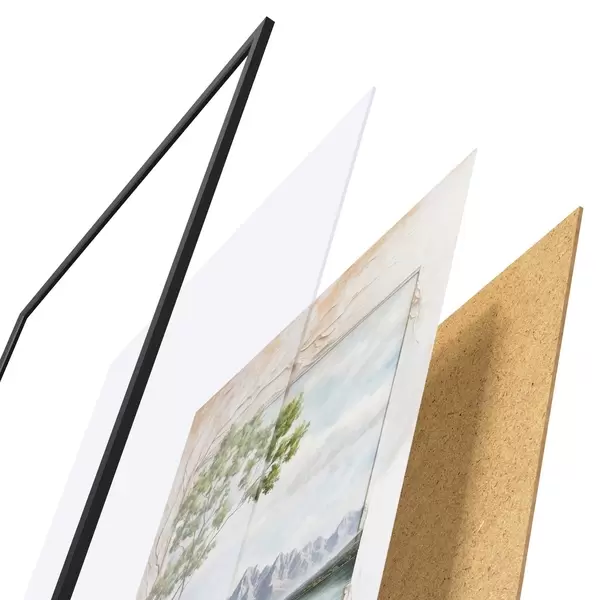 Plakát se skládá z rámu, plexiskla, tištěného obrazu a dřevotřískového podkladu. Díky úchytům na zadní straně lze plakát ihned zavěsit na zeď.