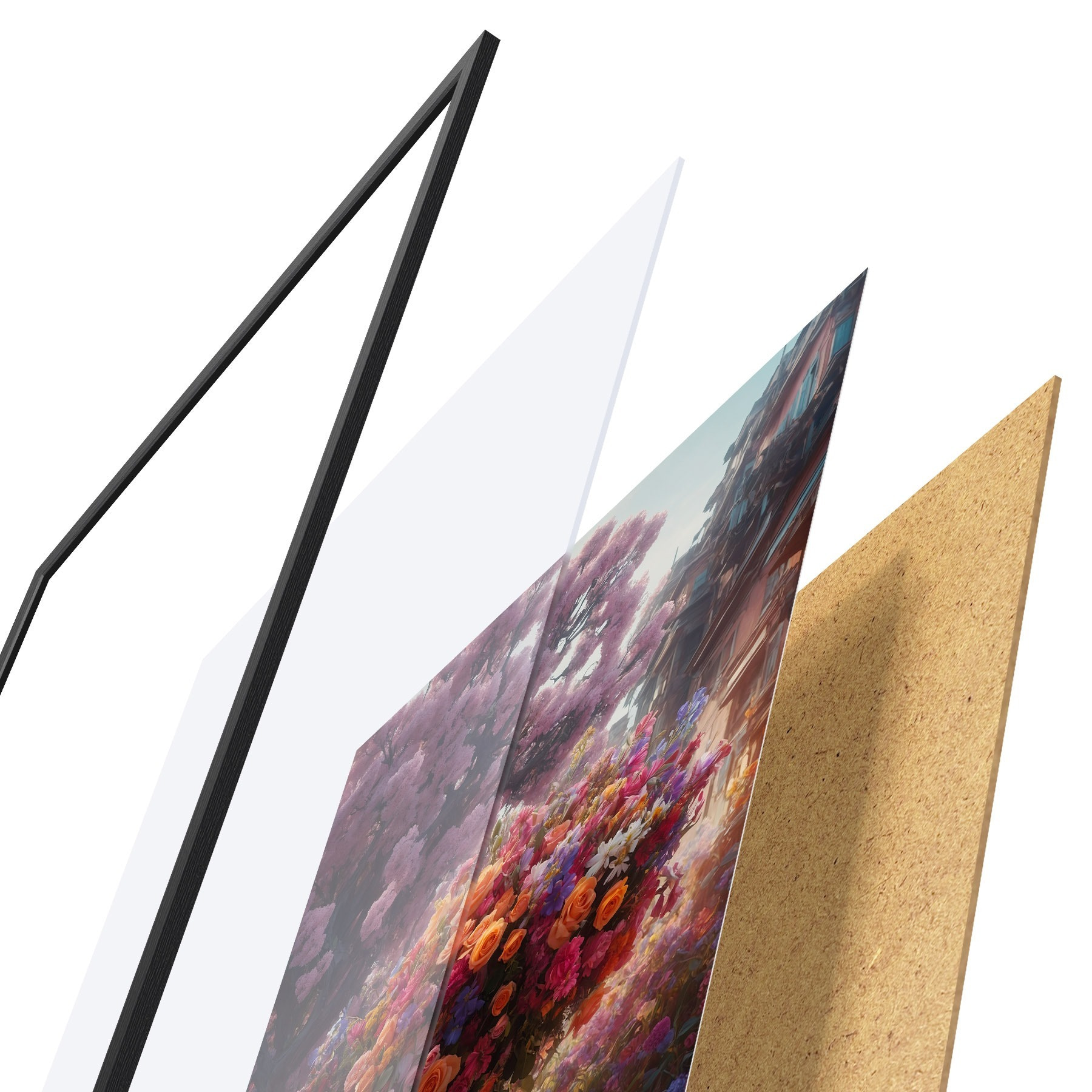 Plakát se skládá z rámu, plexiskla, tištěného obrazu a dřevotřískového podkladu. Díky úchytům na zadní straně lze plakát ihned zavěsit na zeď.