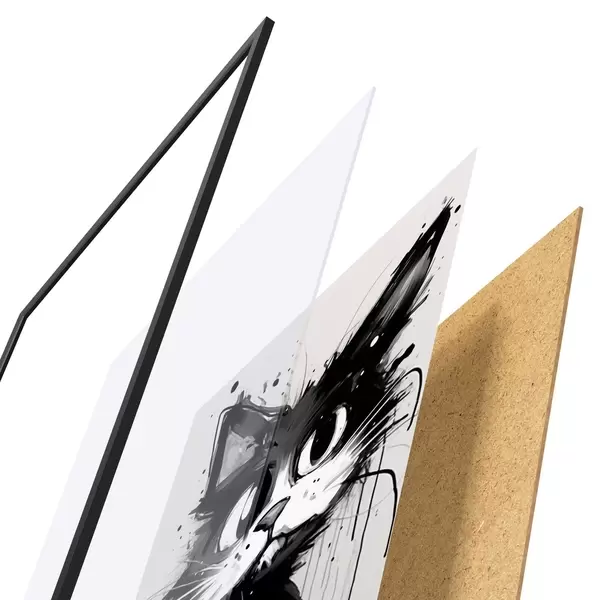 Plakát se skládá z rámu, plexiskla, tištěného obrazu a dřevotřískového podkladu. Díky úchytům na zadní straně lze plakát ihned zavěsit na zeď.