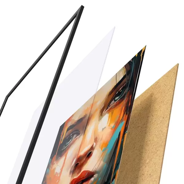Plakát se skládá z rámu, plexiskla, tištěného obrazu a dřevotřískového podkladu. Díky úchytům na zadní straně lze plakát ihned zavěsit na zeď.