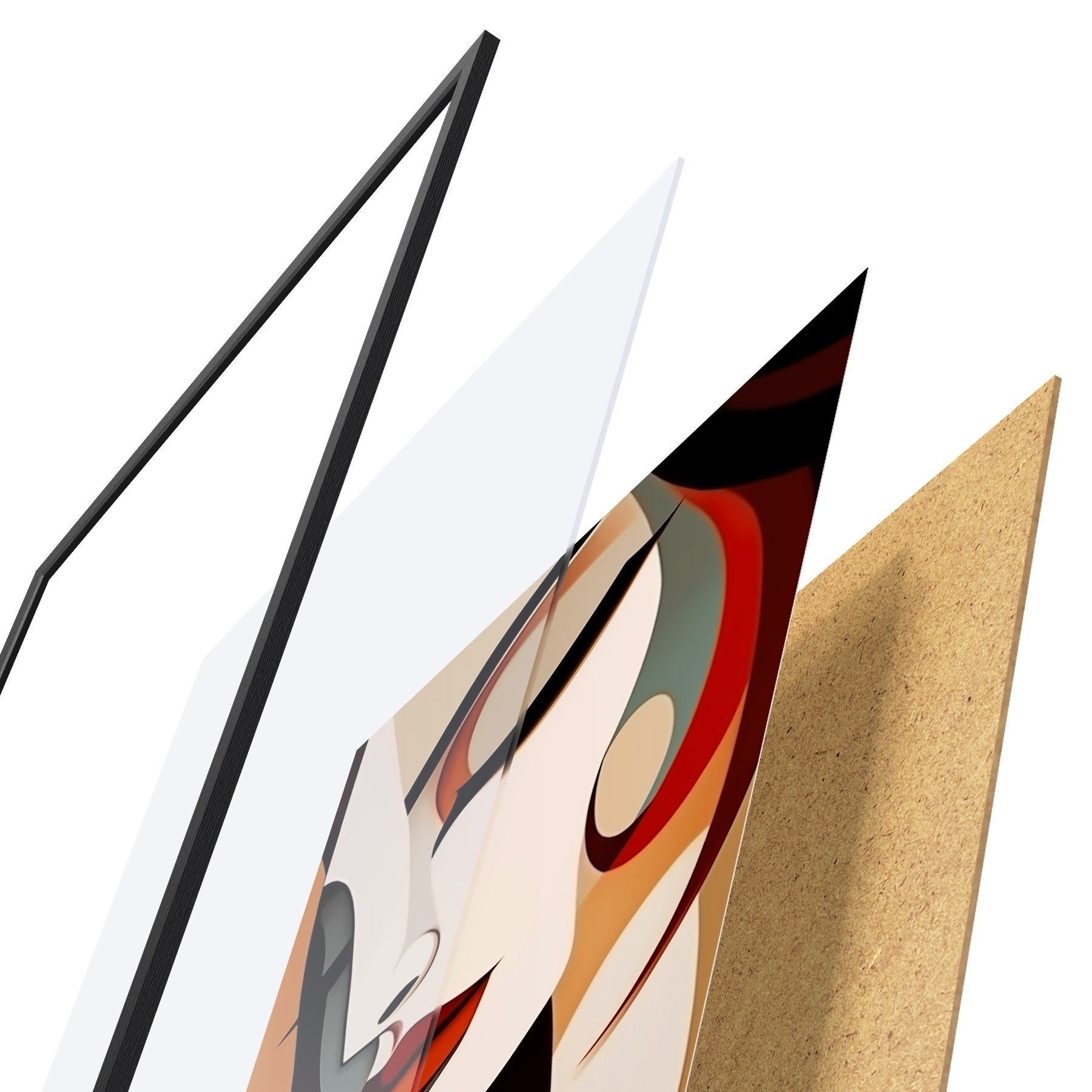 Plakát se skládá z rámu, plexiskla, tištěného obrazu a dřevotřískového podkladu. Díky úchytům na zadní straně lze plakát ihned zavěsit na zeď.