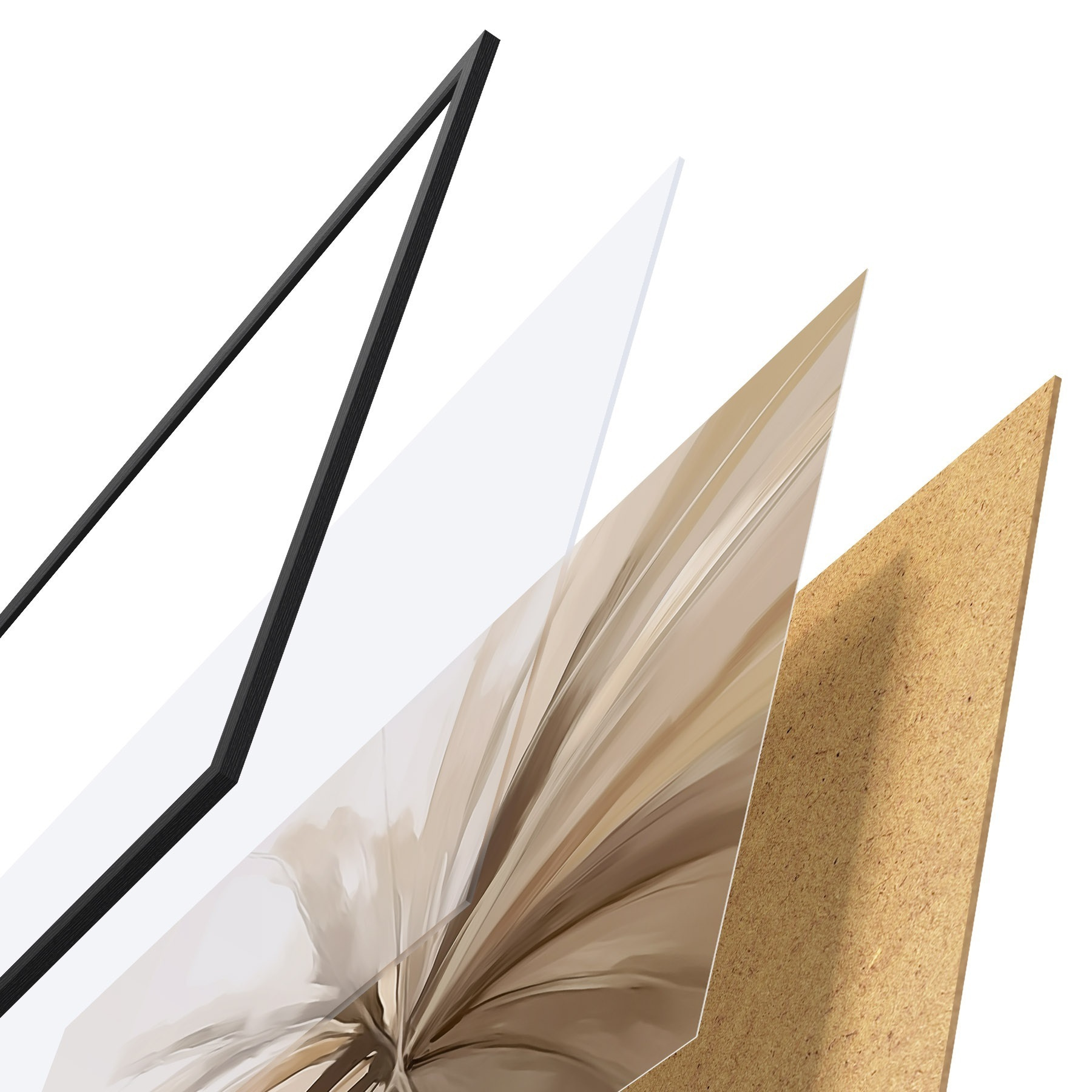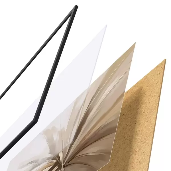Plakát se skládá z rámu, plexiskla, tištěného obrazu a dřevotřískového podkladu. Díky úchytům na zadní straně lze plakát ihned zavěsit na zeď.