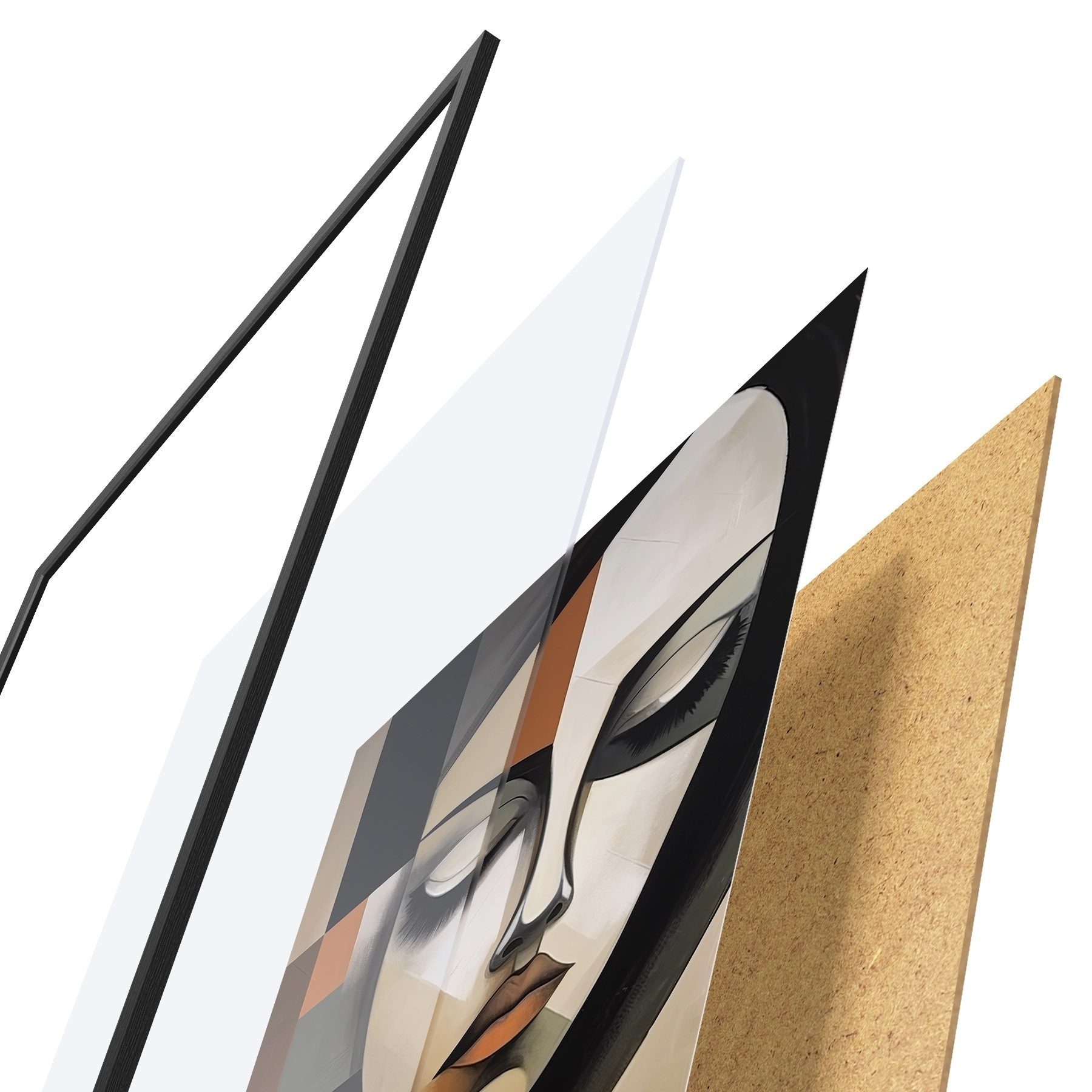 Plakát se skládá z rámu, plexiskla, tištěného obrazu a dřevotřískového podkladu. Díky úchytům na zadní straně lze plakát ihned zavěsit na zeď.