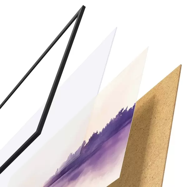 Plakát se skládá z rámu, plexiskla, tištěného obrazu a dřevotřískového podkladu. Díky úchytům na zadní straně lze plakát ihned zavěsit na zeď.
