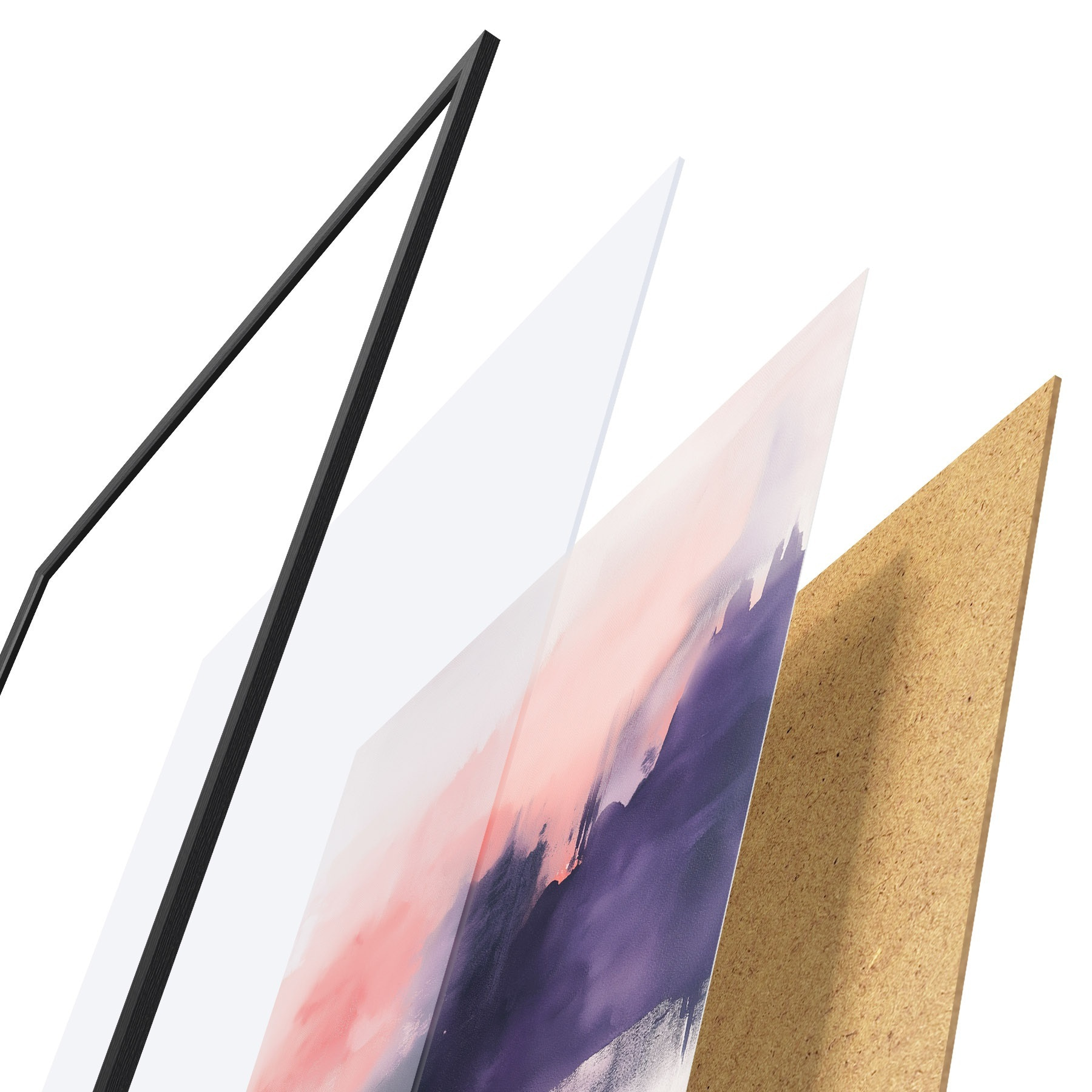 Plakát se skládá z rámu, plexiskla, tištěného obrazu a dřevotřískového podkladu. Díky úchytům na zadní straně lze plakát ihned zavěsit na zeď.