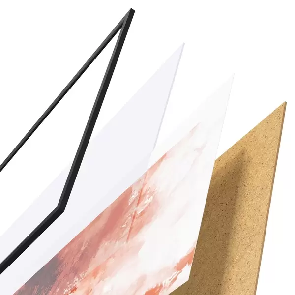 Plakát se skládá z rámu, plexiskla, tištěného obrazu a dřevotřískového podkladu. Díky úchytům na zadní straně lze plakát ihned zavěsit na zeď.