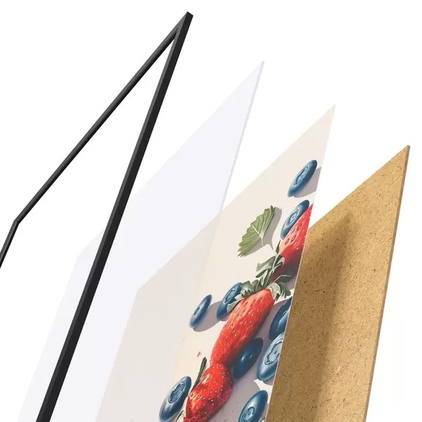 Plakát se skládá z rámu, plexiskla, tištěného obrazu a dřevotřískového podkladu. Díky úchytům na zadní straně lze plakát ihned zavěsit na zeď.