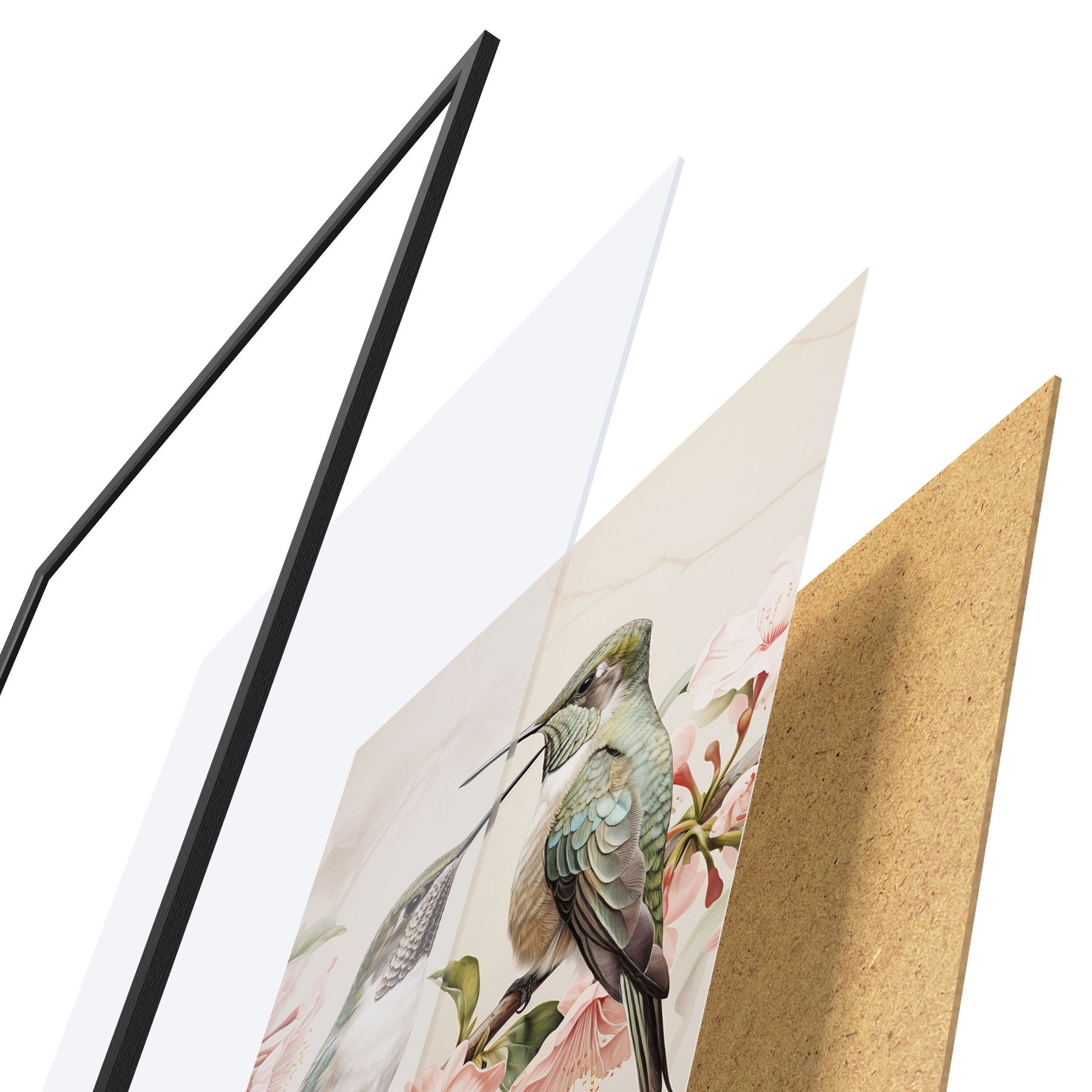 Plakát se skládá z rámu, plexiskla, tištěného obrazu a dřevotřískového podkladu. Díky úchytům na zadní straně lze plakát ihned zavěsit na zeď.
