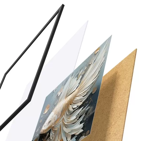 Plakát se skládá z rámu, plexiskla, tištěného obrazu a dřevotřískového podkladu. Díky úchytům na zadní straně lze plakát ihned zavěsit na zeď.