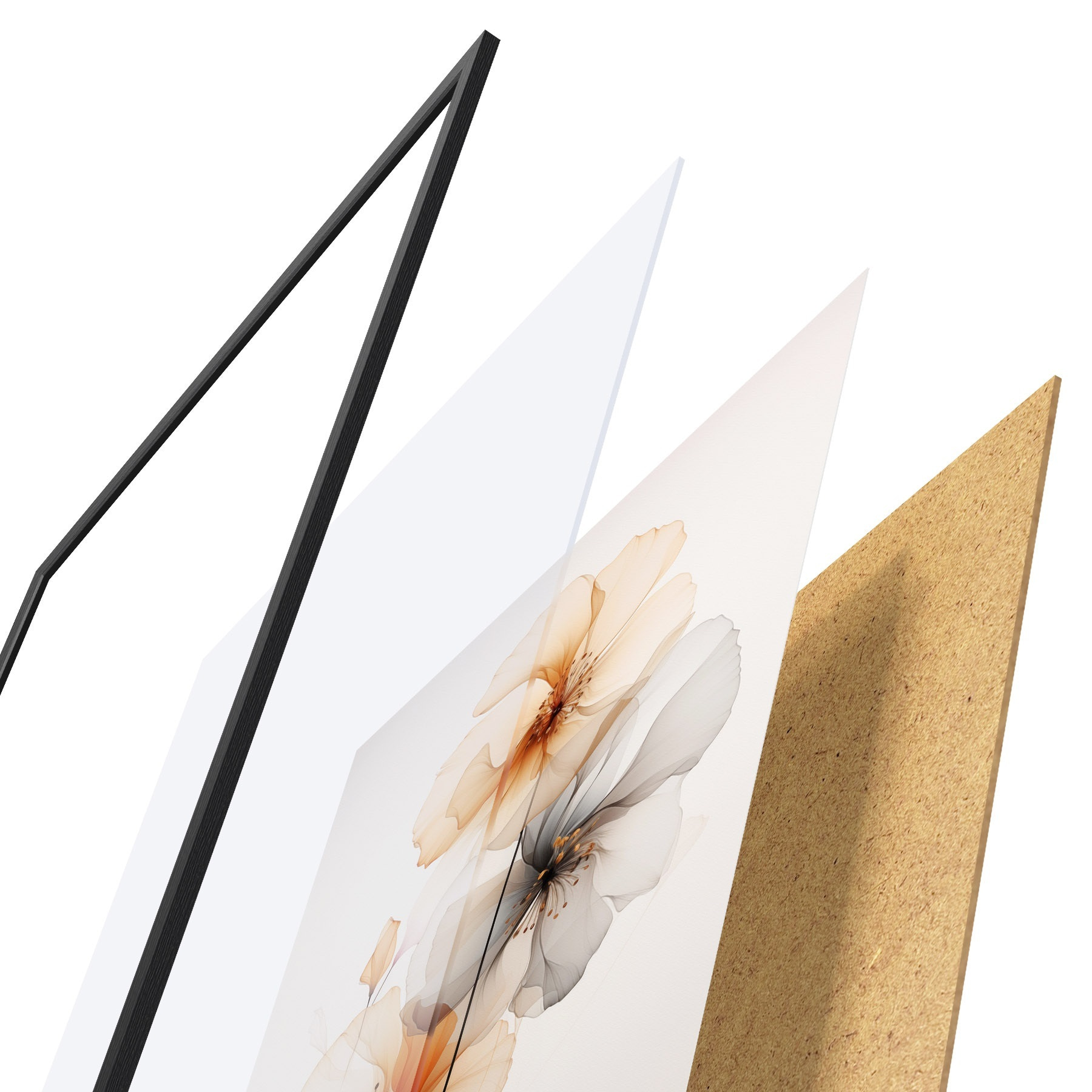 Plakát se skládá z rámu, plexiskla, tištěného obrazu a dřevotřískového podkladu. Díky úchytům na zadní straně lze plakát ihned zavěsit na zeď.
