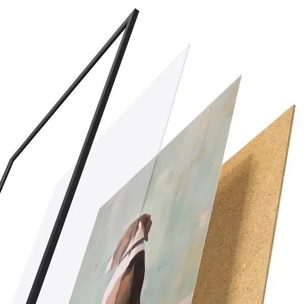 Plakát se skládá z rámu, plexiskla, tištěného obrazu a dřevotřískového podkladu. Díky úchytům na zadní straně lze plakát ihned zavěsit na zeď.