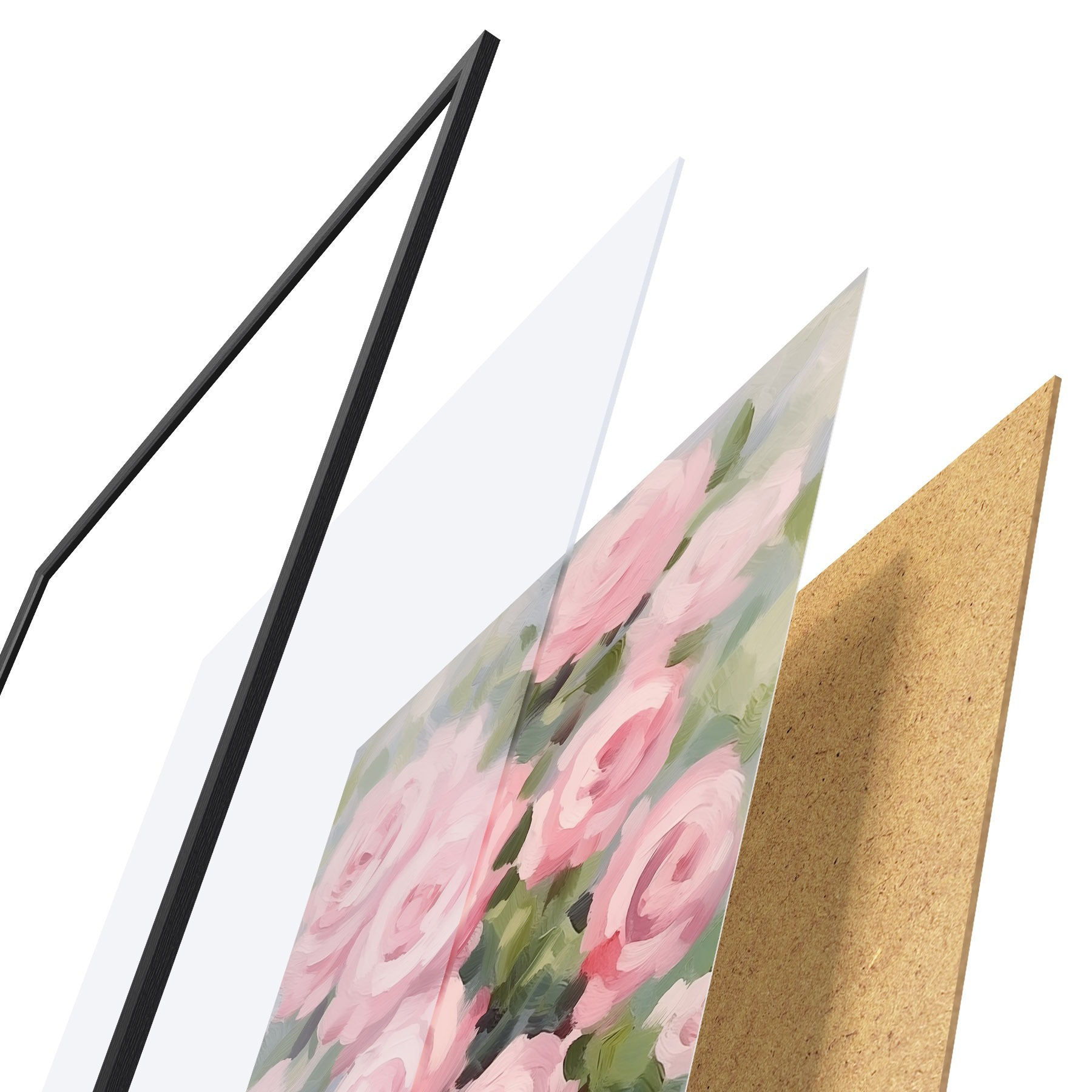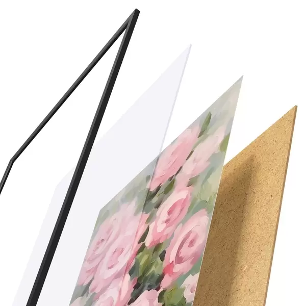 Plakát se skládá z rámu, plexiskla, tištěného obrazu a dřevotřískového podkladu. Díky úchytům na zadní straně lze plakát ihned zavěsit na zeď.
