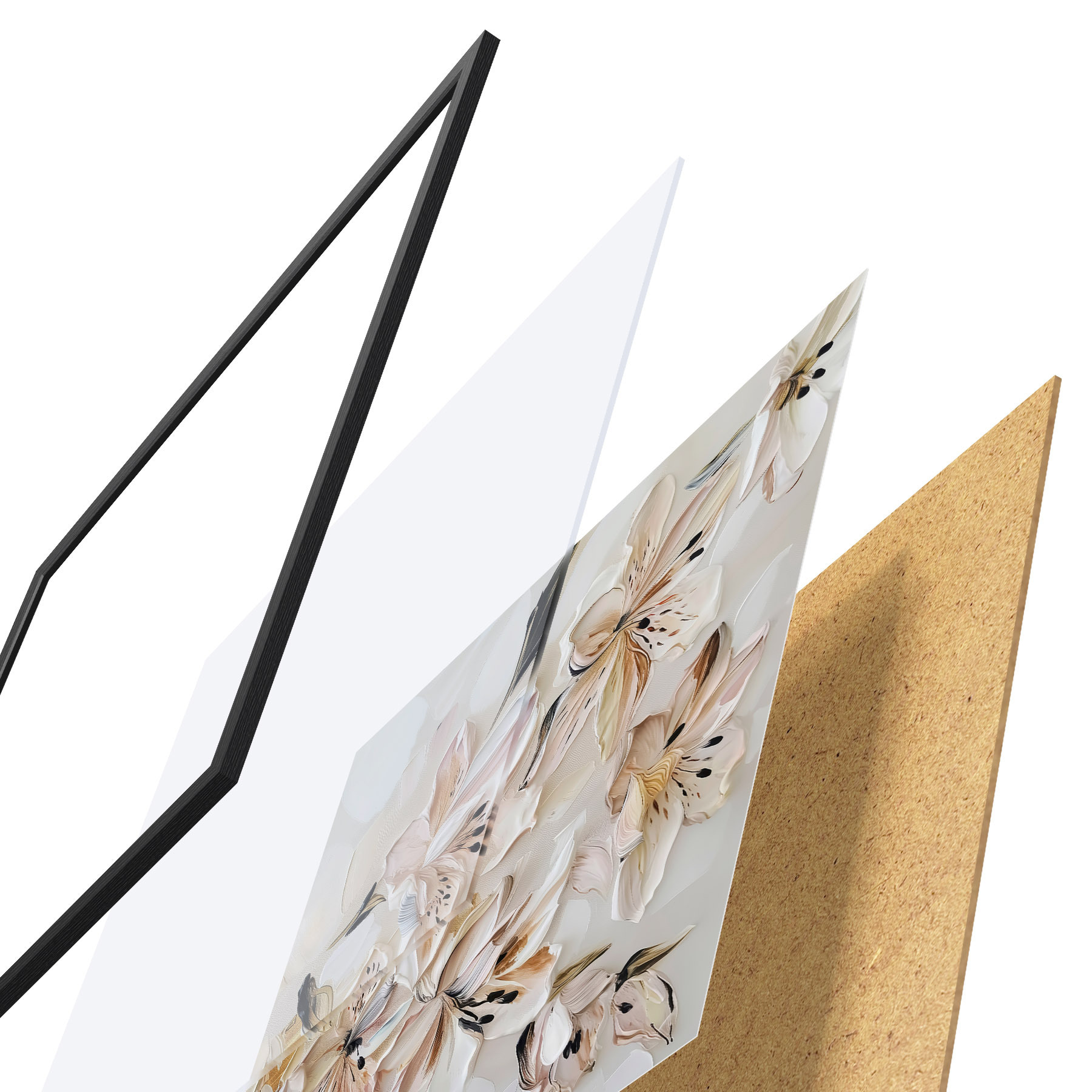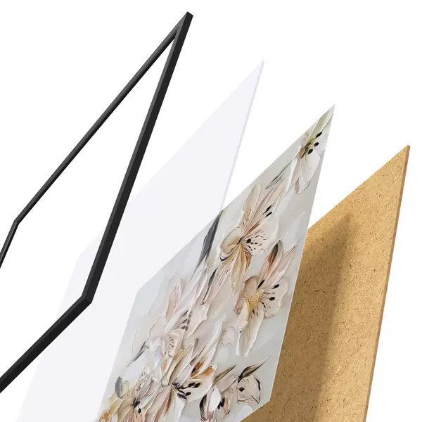 Plakát se skládá z rámu, plexiskla, tištěného obrazu a dřevotřískového podkladu. Díky úchytům na zadní straně lze plakát ihned zavěsit na zeď.