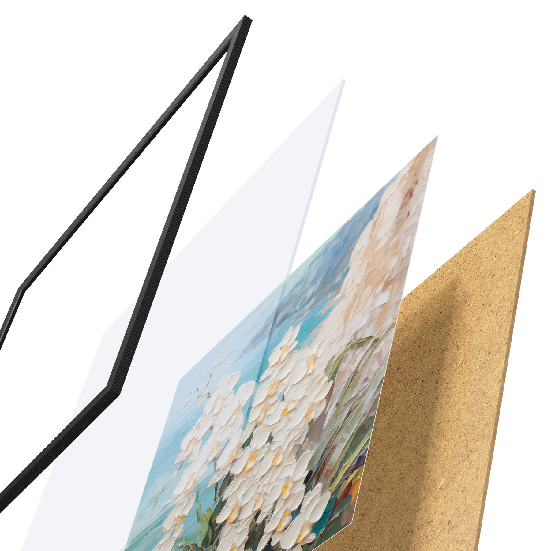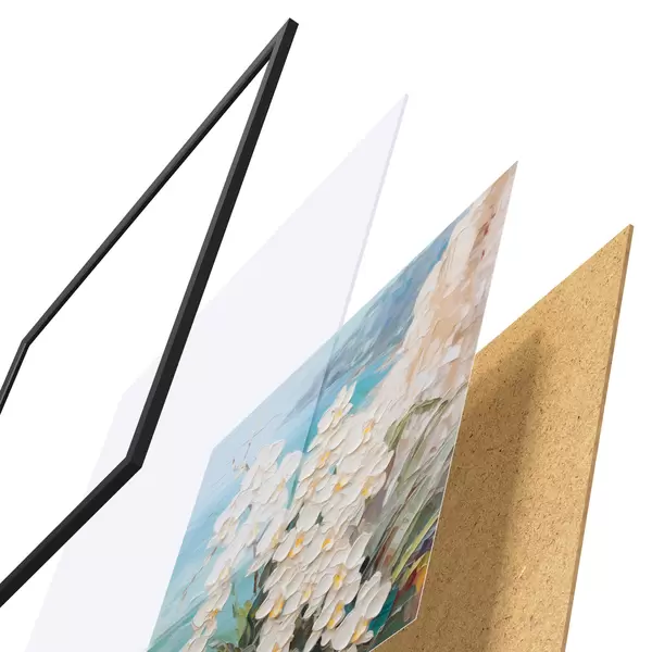 Plakát se skládá z rámu, plexiskla, tištěného obrazu a dřevotřískového podkladu. Díky úchytům na zadní straně lze plakát ihned zavěsit na zeď.