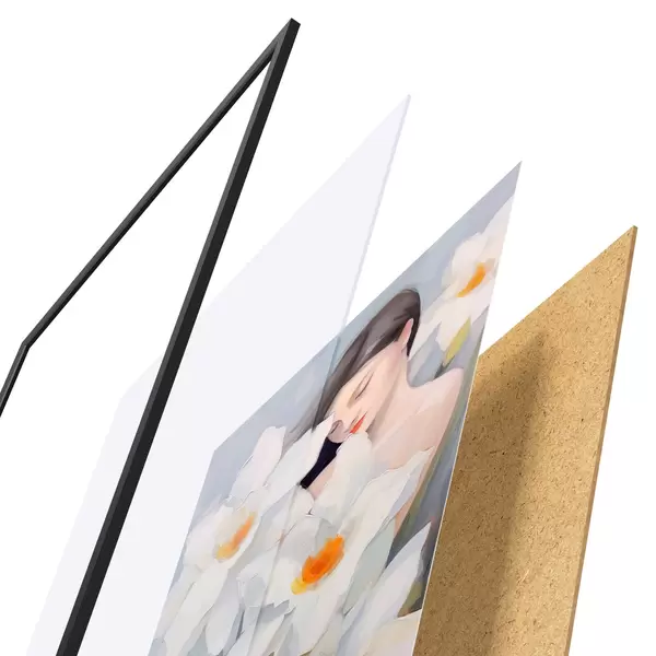 Plakát se skládá z rámu, plexiskla, tištěného obrazu a dřevotřískového podkladu. Díky úchytům na zadní straně lze plakát ihned zavěsit na zeď.