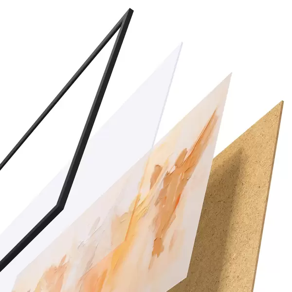 Plakát se skládá z rámu, plexiskla, tištěného obrazu a dřevotřískového podkladu. Díky úchytům na zadní straně lze plakát ihned zavěsit na zeď.