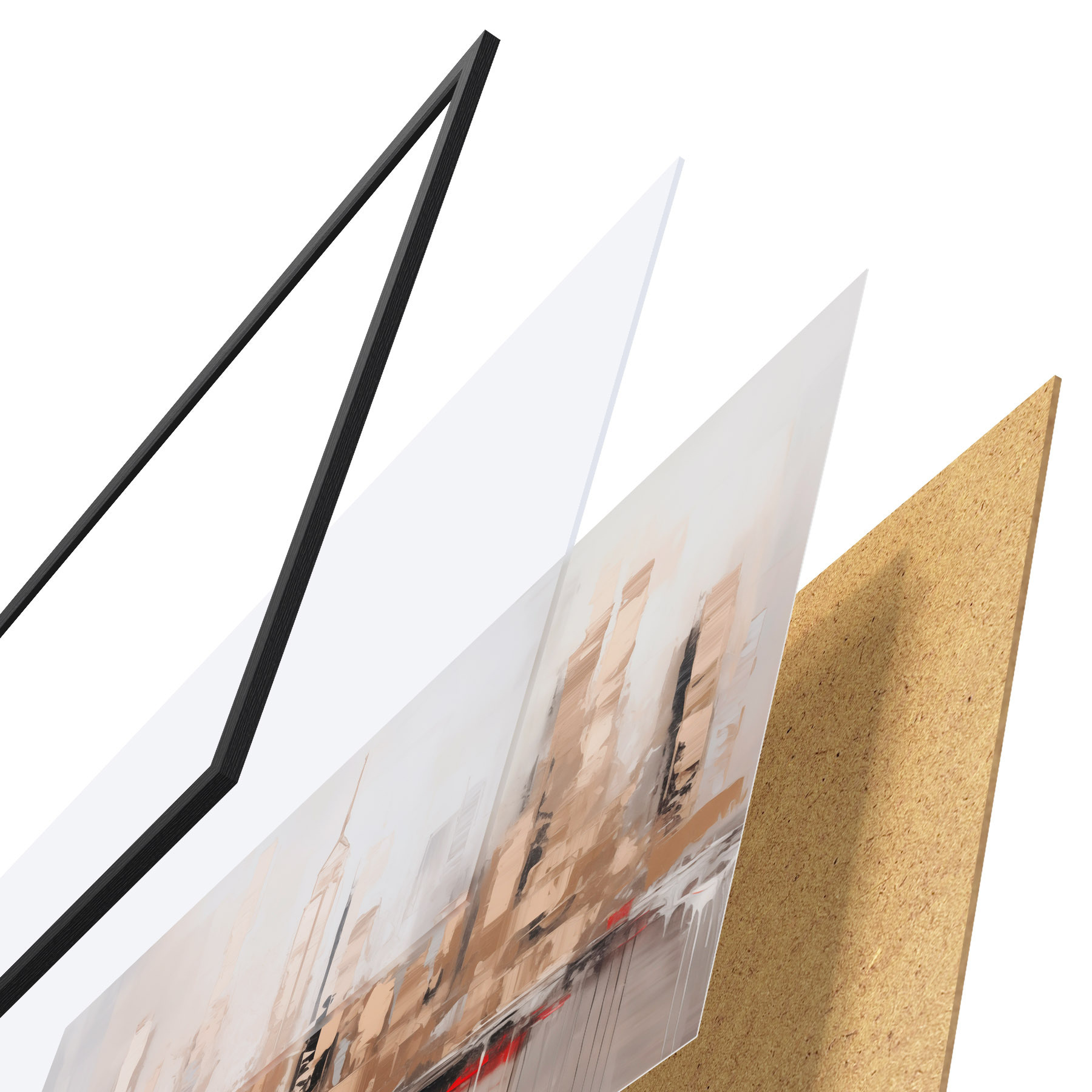 Plakát se skládá z rámu, plexiskla, tištěného obrazu a dřevotřískového podkladu. Díky úchytům na zadní straně lze plakát ihned zavěsit na zeď.