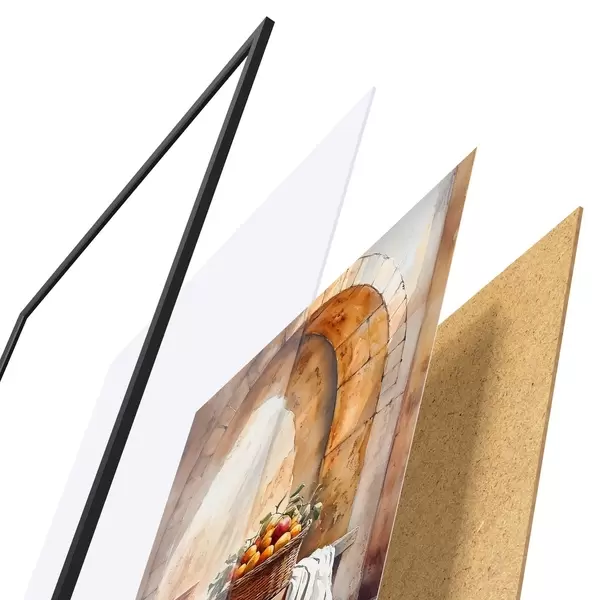 Plakát se skládá z rámu, plexiskla, tištěného obrazu a dřevotřískového podkladu. Díky úchytům na zadní straně lze plakát ihned zavěsit na zeď.