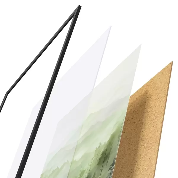 Plakát se skládá z rámu, plexiskla, tištěného obrazu a dřevotřískového podkladu. Díky úchytům na zadní straně lze plakát ihned zavěsit na zeď.
