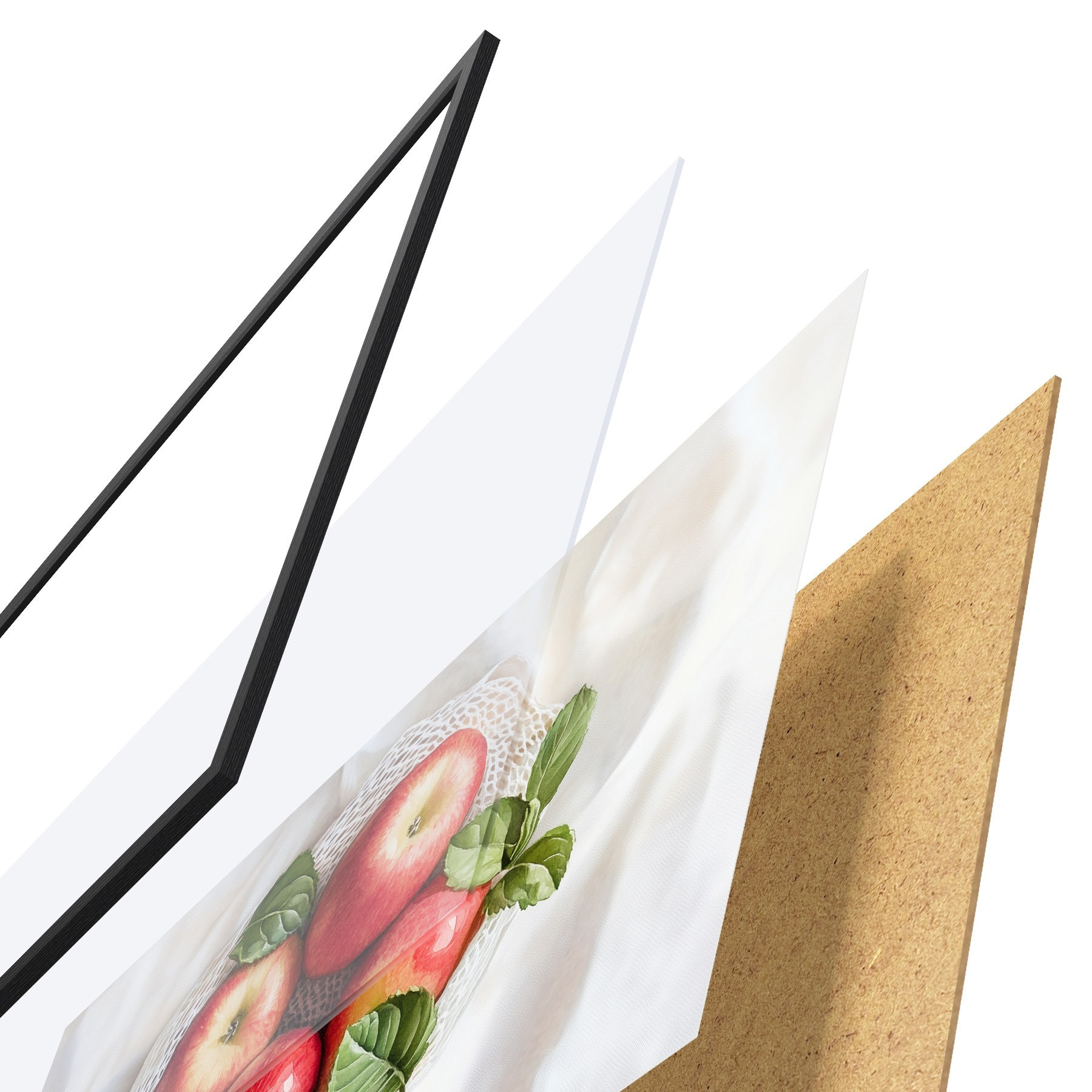 Plakát se skládá z rámu, plexiskla, tištěného obrazu a dřevotřískového podkladu. Díky úchytům na zadní straně lze plakát ihned zavěsit na zeď.