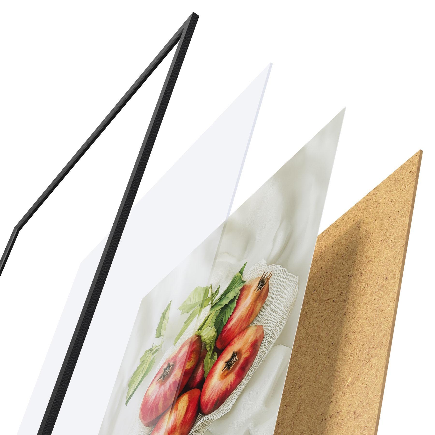 Plakát se skládá z rámu, plexiskla, tištěného obrazu a dřevotřískového podkladu. Díky úchytům na zadní straně lze plakát ihned zavěsit na zeď.