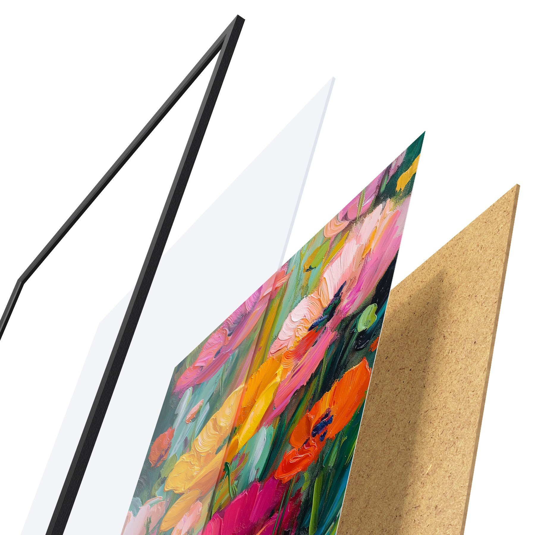 Plakát se skládá z rámu, plexiskla, tištěného obrazu a dřevotřískového podkladu. Díky úchytům na zadní straně lze plakát ihned zavěsit na zeď.