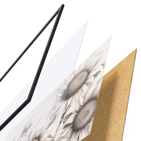 Plakát se skládá z rámu, plexiskla, tištěného obrazu a dřevotřískového podkladu. Díky úchytům na zadní straně lze plakát ihned zavěsit na zeď.