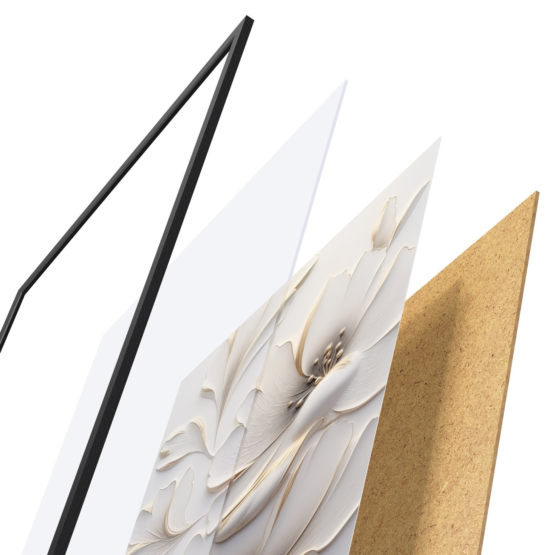 Plakát se skládá z rámu, plexiskla, tištěného obrazu a dřevotřískového podkladu. Díky úchytům na zadní straně lze plakát ihned zavěsit na zeď.