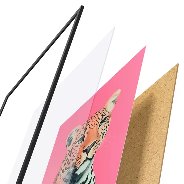 Plakát se skládá z rámu, plexiskla, tištěného obrazu a dřevotřískového podkladu. Díky úchytům na zadní straně lze plakát ihned zavěsit na zeď.