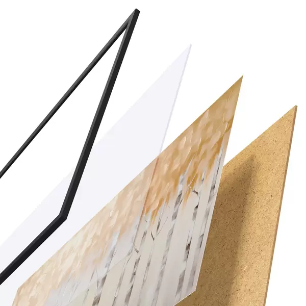 Plakát se skládá z rámu, plexiskla, tištěného obrazu a dřevotřískového podkladu. Díky úchytům na zadní straně lze plakát ihned zavěsit na zeď.