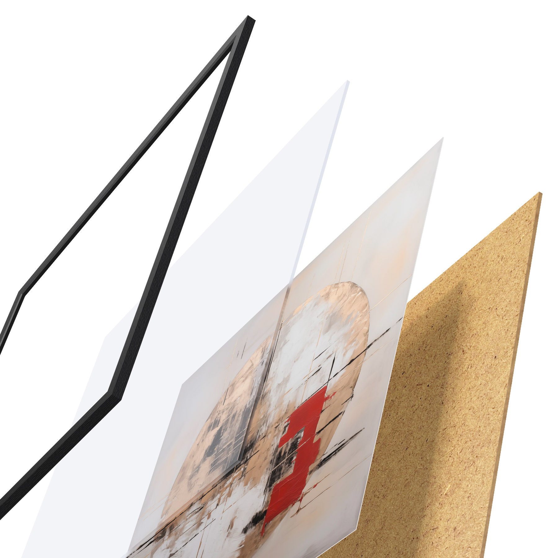 Plakát se skládá z rámu, plexiskla, tištěného obrazu a dřevotřískového podkladu. Díky úchytům na zadní straně lze plakát ihned zavěsit na zeď.