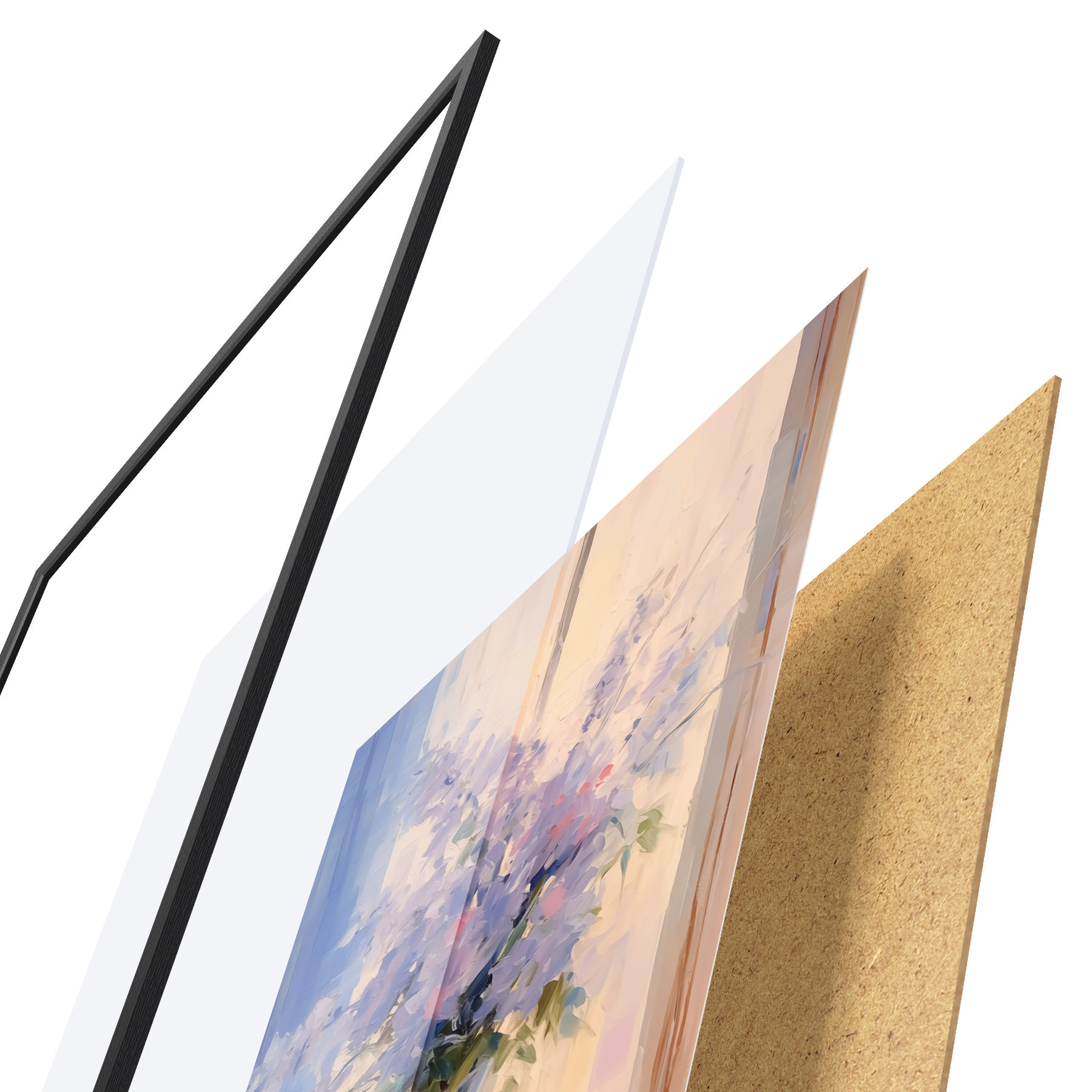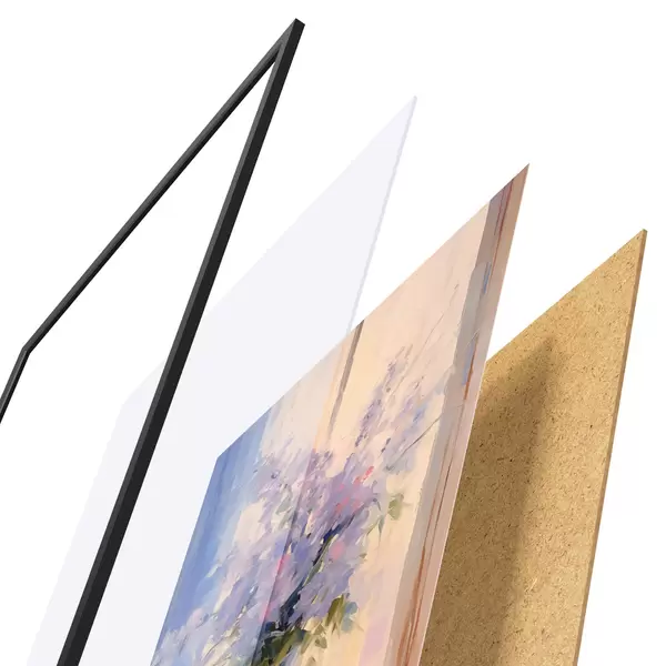 Plakát se skládá z rámu, plexiskla, tištěného obrazu a dřevotřískového podkladu. Díky úchytům na zadní straně lze plakát ihned zavěsit na zeď.