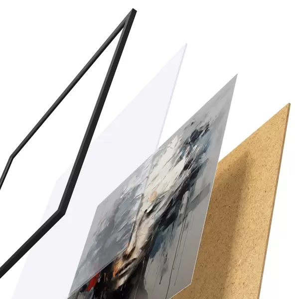 Plakát se skládá z rámu, plexiskla, tištěného obrazu a dřevotřískového podkladu. Díky úchytům na zadní straně lze plakát ihned zavěsit na zeď.