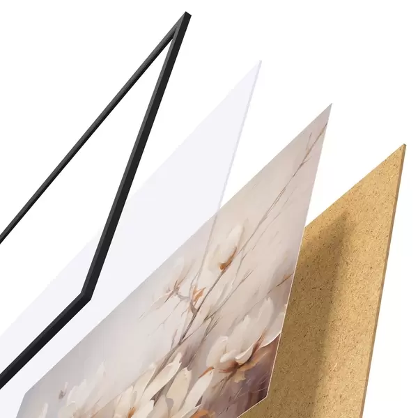 Plakát se skládá z rámu, plexiskla, tištěného obrazu a dřevotřískového podkladu. Díky úchytům na zadní straně lze plakát ihned zavěsit na zeď.