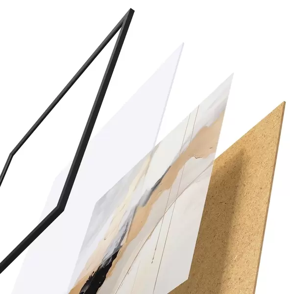 Plakát se skládá z rámu, plexiskla, tištěného obrazu a dřevotřískového podkladu. Díky úchytům na zadní straně lze plakát ihned zavěsit na zeď.